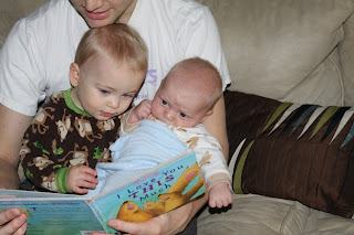 Our little Sammy is over two months now! He is just the sweetest little guy ever! He loves to cuddle and sleep on us still if we let him. He started smiling a few weeks ago and his face just lights up a room! He is sleeping pretty good during the nights. One of us only has to usually get up once in the nighttime to feed him and then he goes right back down without a peep! He loves it when we smile at him (especially Jack). He smiles right back and it's just the cutest thing! We are so blessed! Other fun things about Sam:
